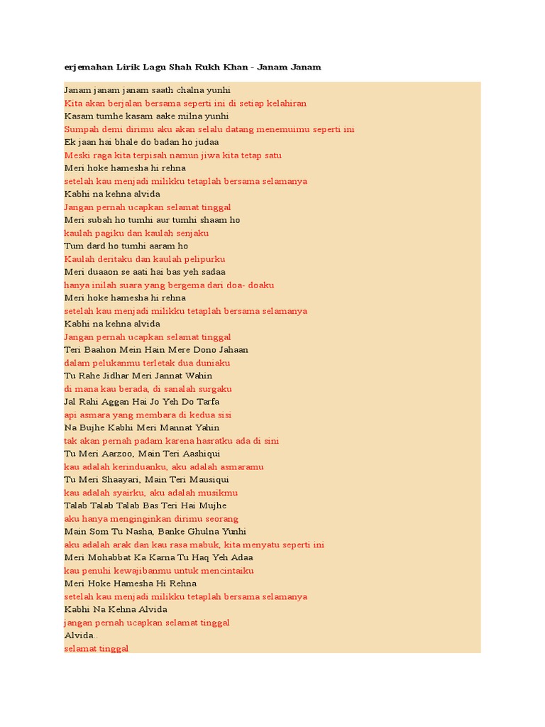 Erjemahan Lirik Lagu Shah Rukh Khan Pdf