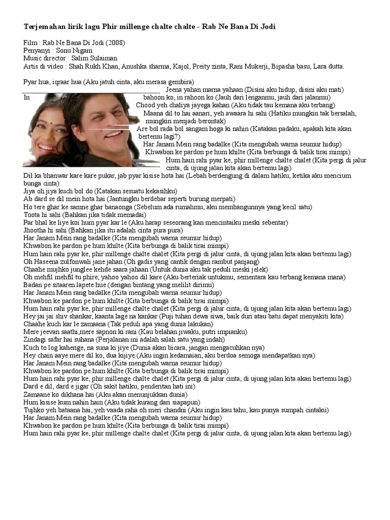 Rab Ne Bana Di Jodi Terjemah Lirik Pdf